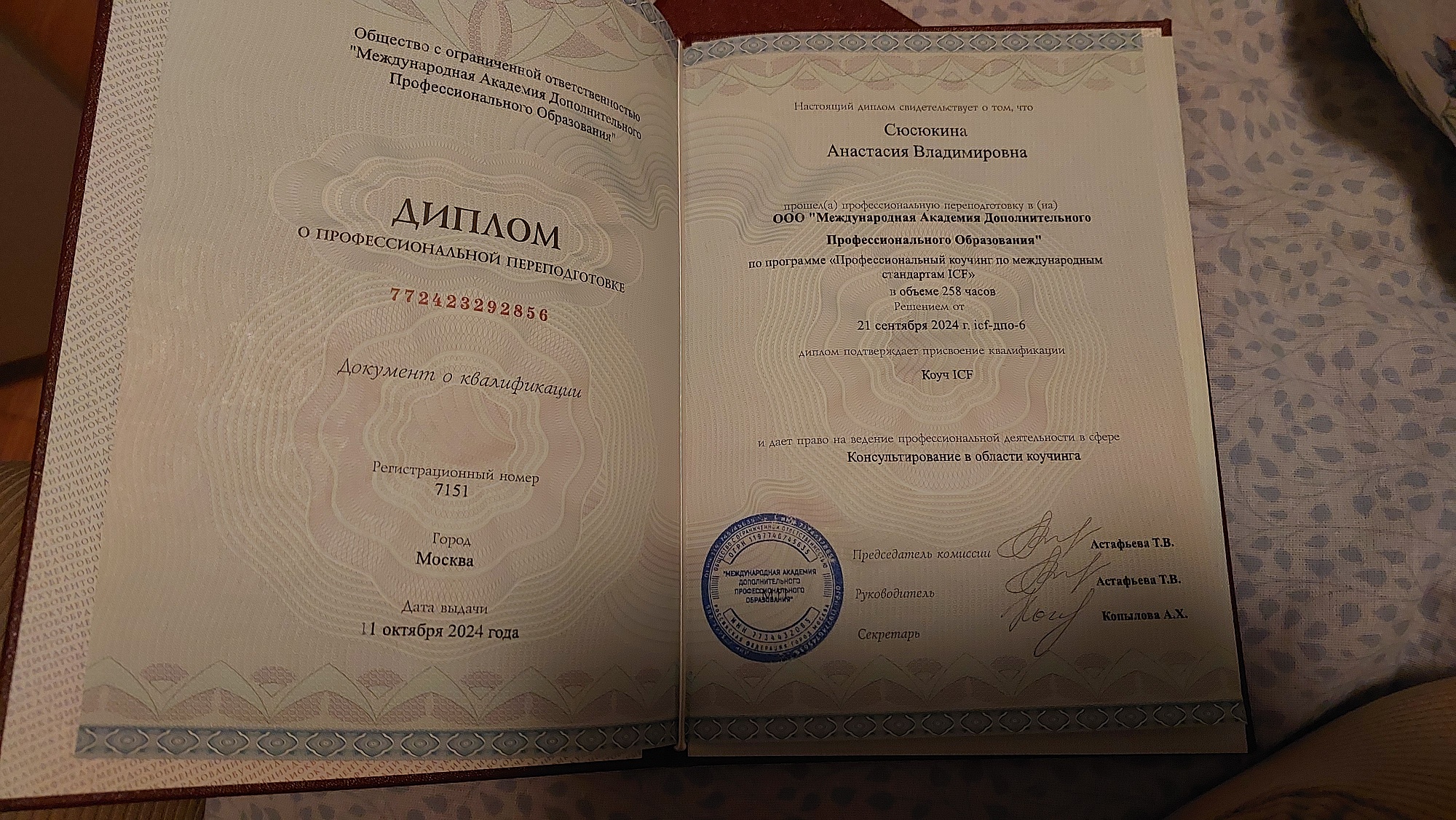 - Академия "EdPro", коуч ICF2024