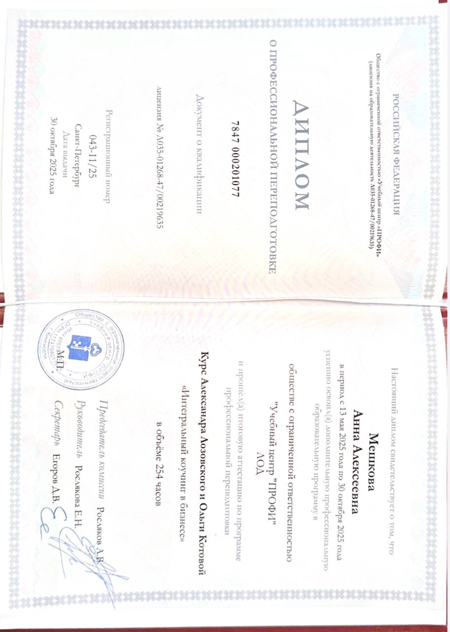 - ООО Учебный центр "Профи" ДОЛ, Интегральный коучинг в бизнесе2025