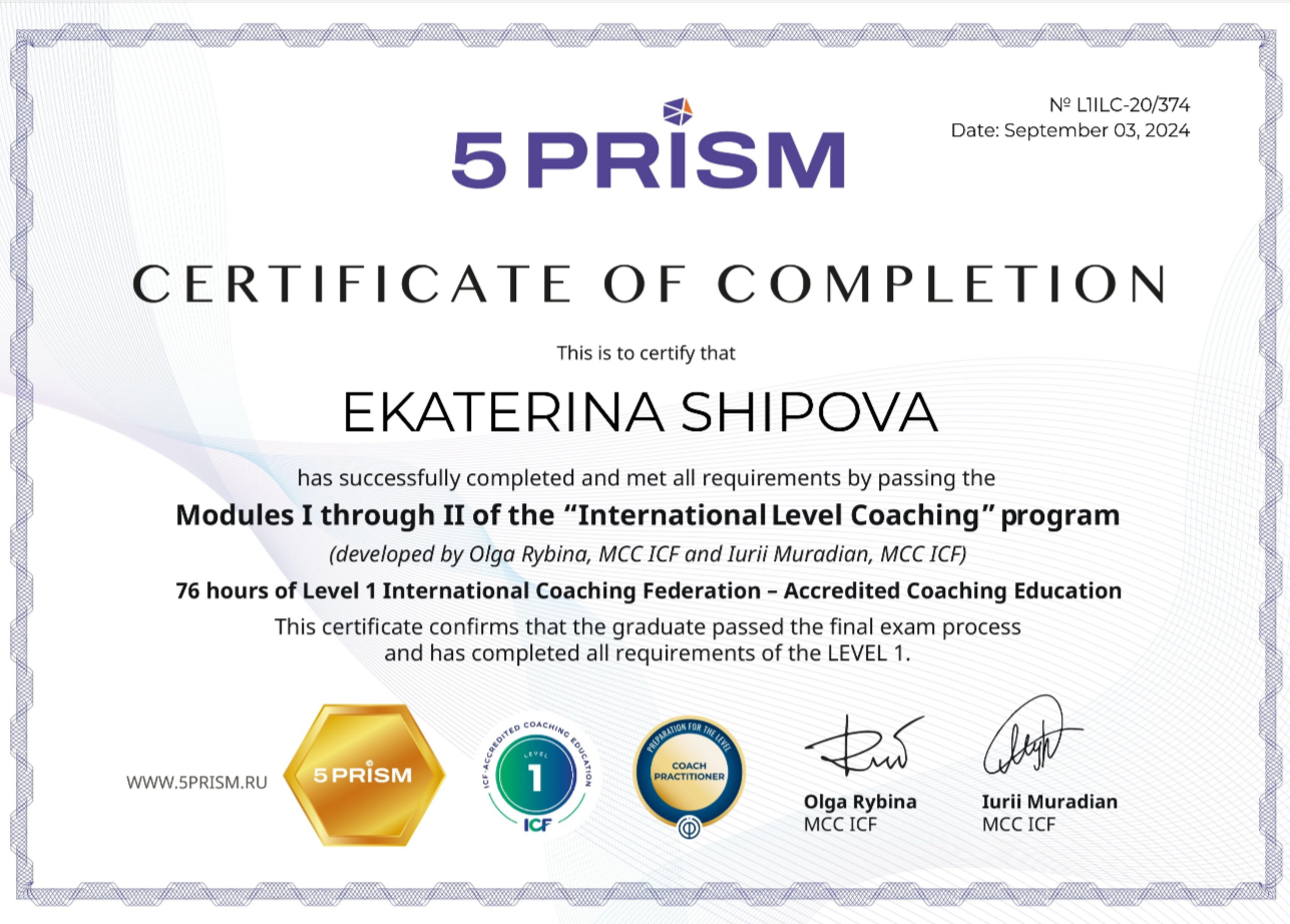 - Коуч по международным стандартам ICF2024
