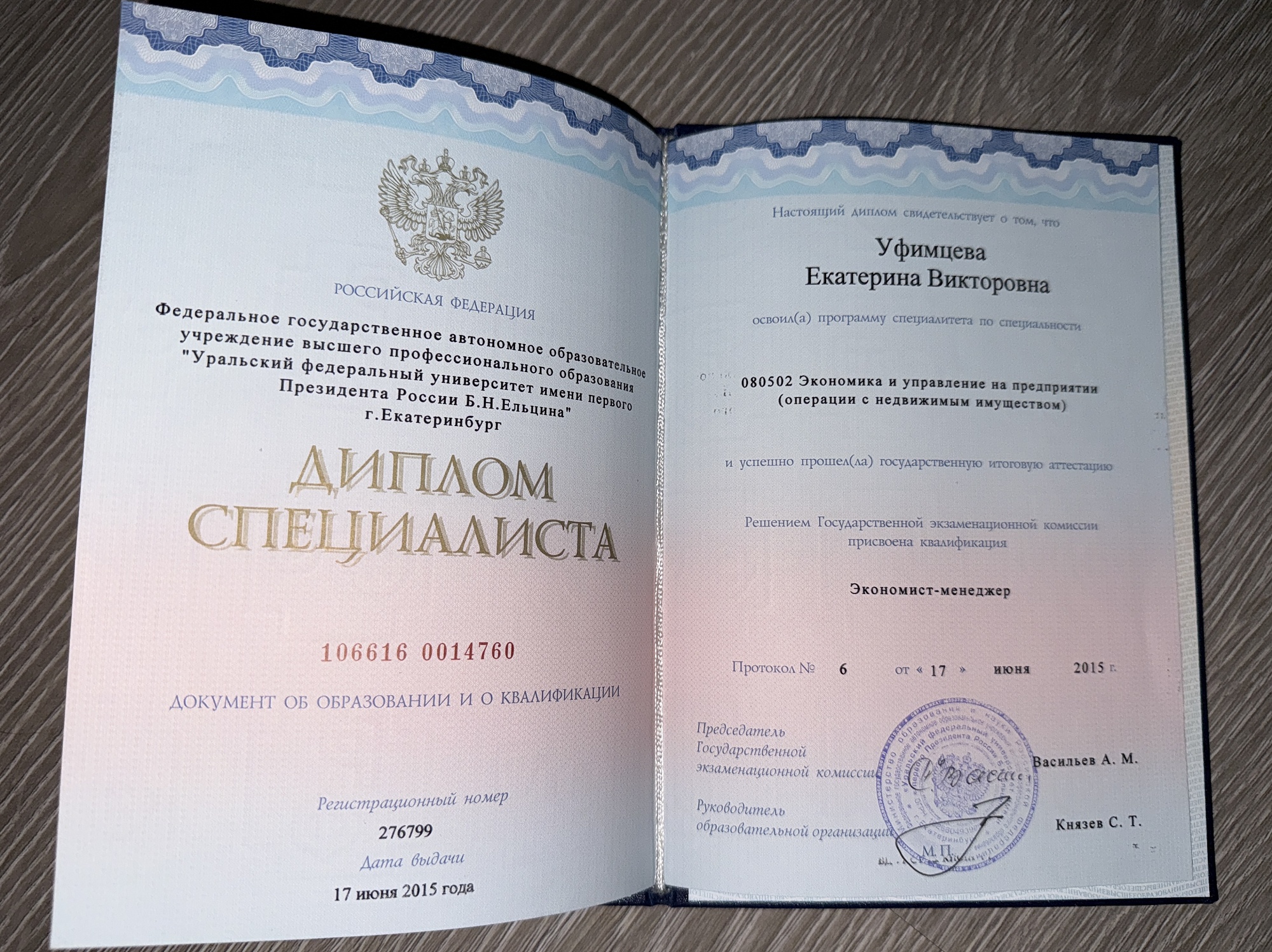 - Уральский федеральный университет имени первого Президента России Б.Н. Ельцина, Екатеринбург2015