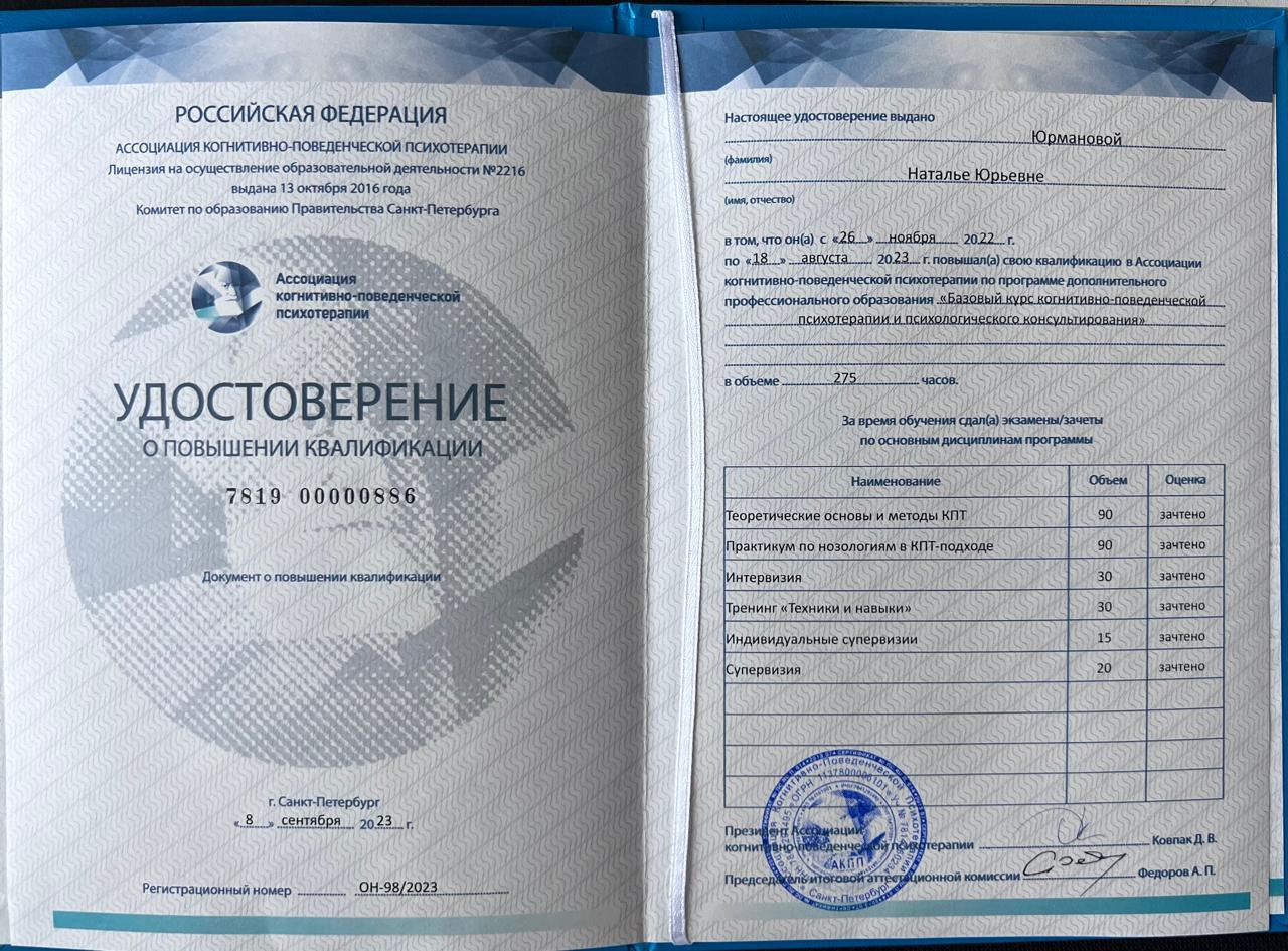 Основной метод – когнитивно – поведенческая терапия, которая помогает пересмотреть не эффективные способы взаимодействия и установки. А это в свою очередь влияет на улучшение эмоционального состояния и ощущение осознанности своей жизни.