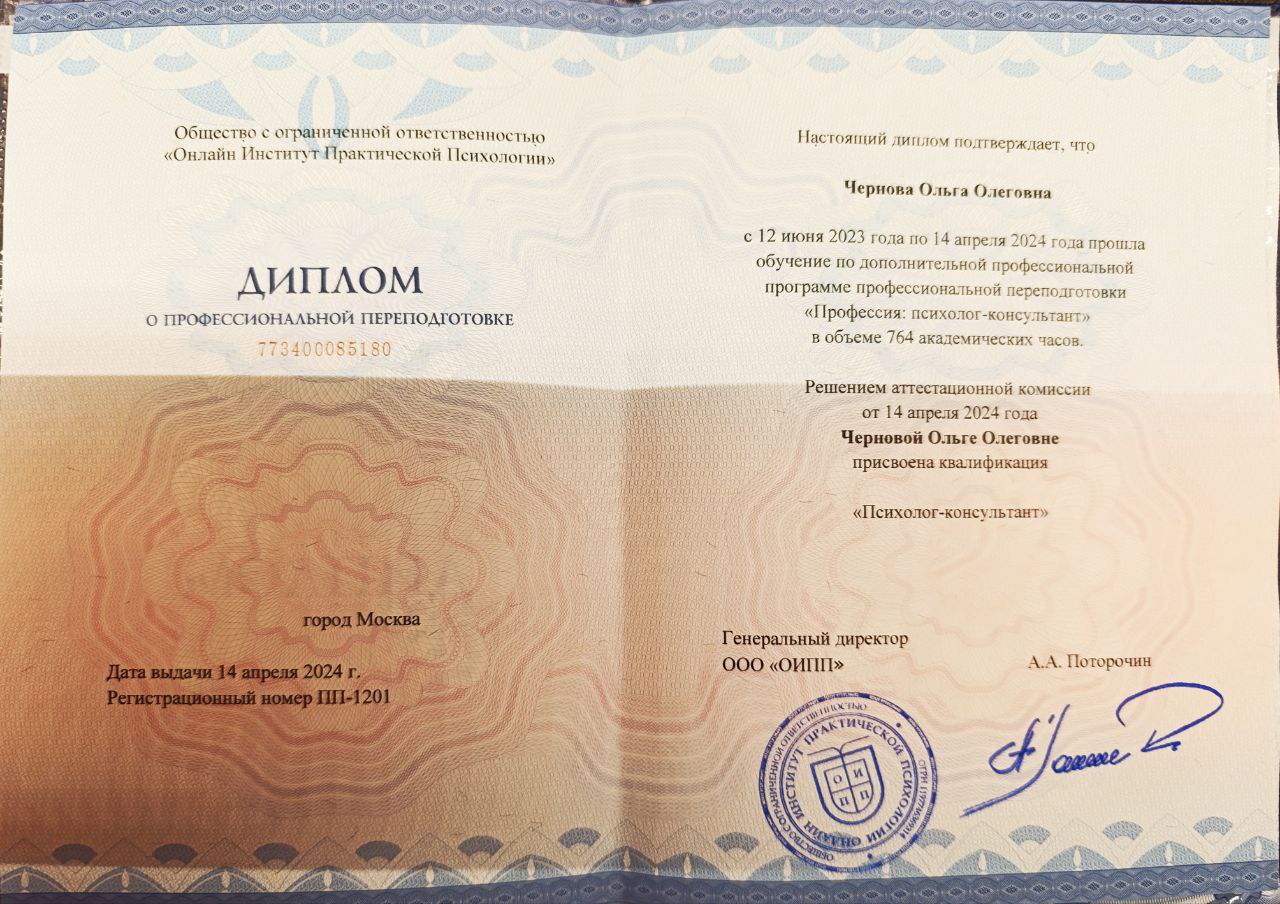 Я Ольга — дипломированный практикующий психолог.